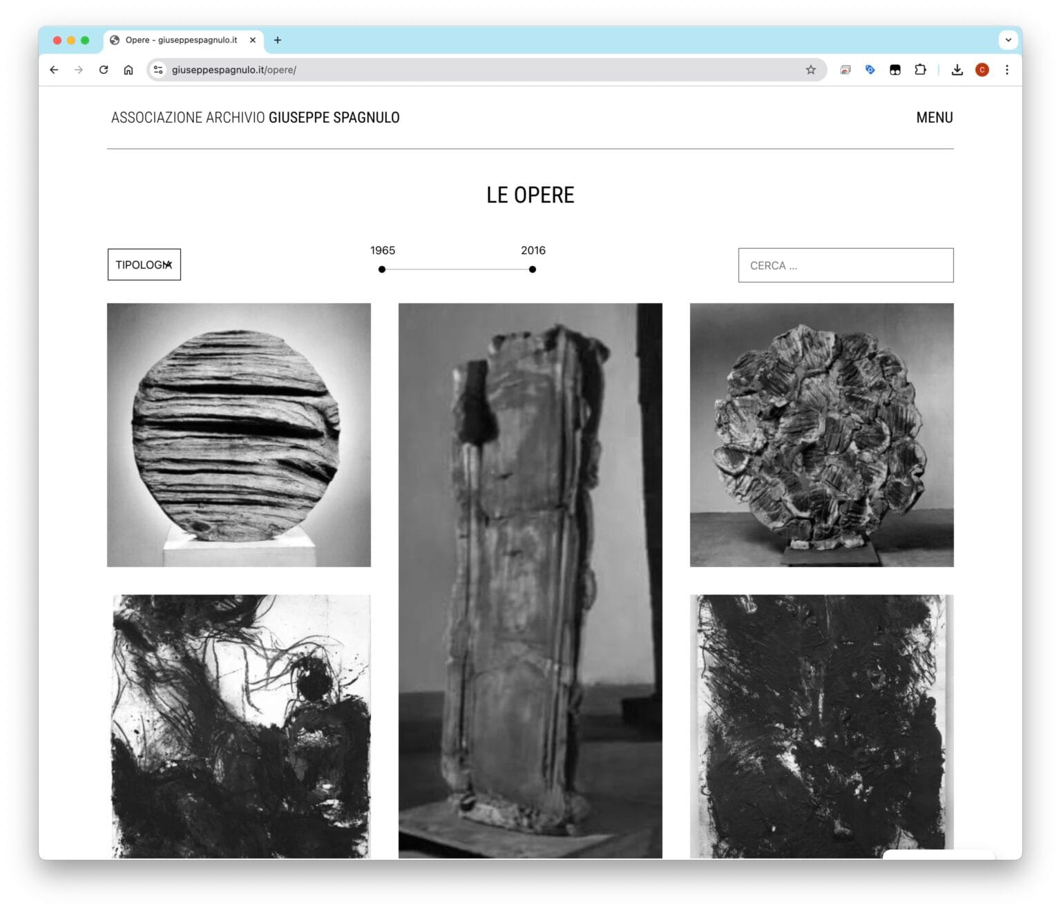 Realizzato con una interfaccia innovativa nella sezione della ricerca delle opere il sito web offre uno spazio informativo unico per scoprire l’artista Giuseppe Spagnulo.