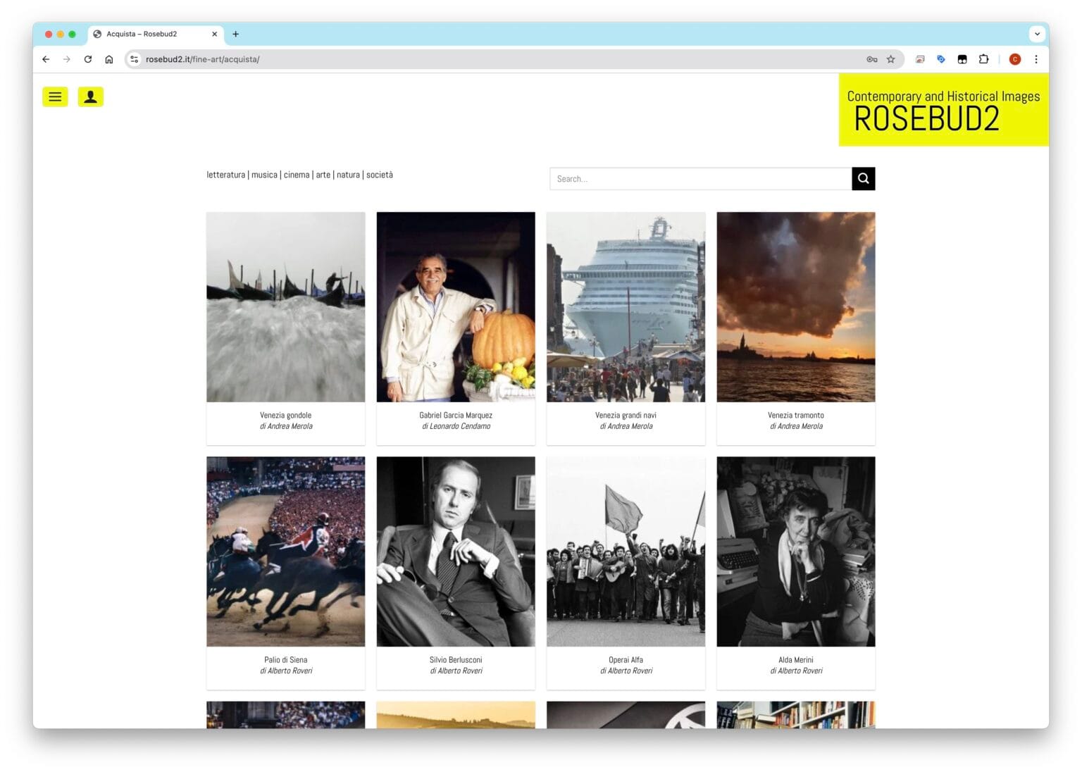 Rosebud2 ha venduto e continua a vendere le sue immagini a tema culturale: con personaggi come scrittori, artisti, musicisti, attori, registi etc. a quotidiani, giornali, siti web, case editrici, case di produzione cinematografiche e chiunque abbia bisogno di pubblicare immagini di personaggi legati al mondo della cultura.