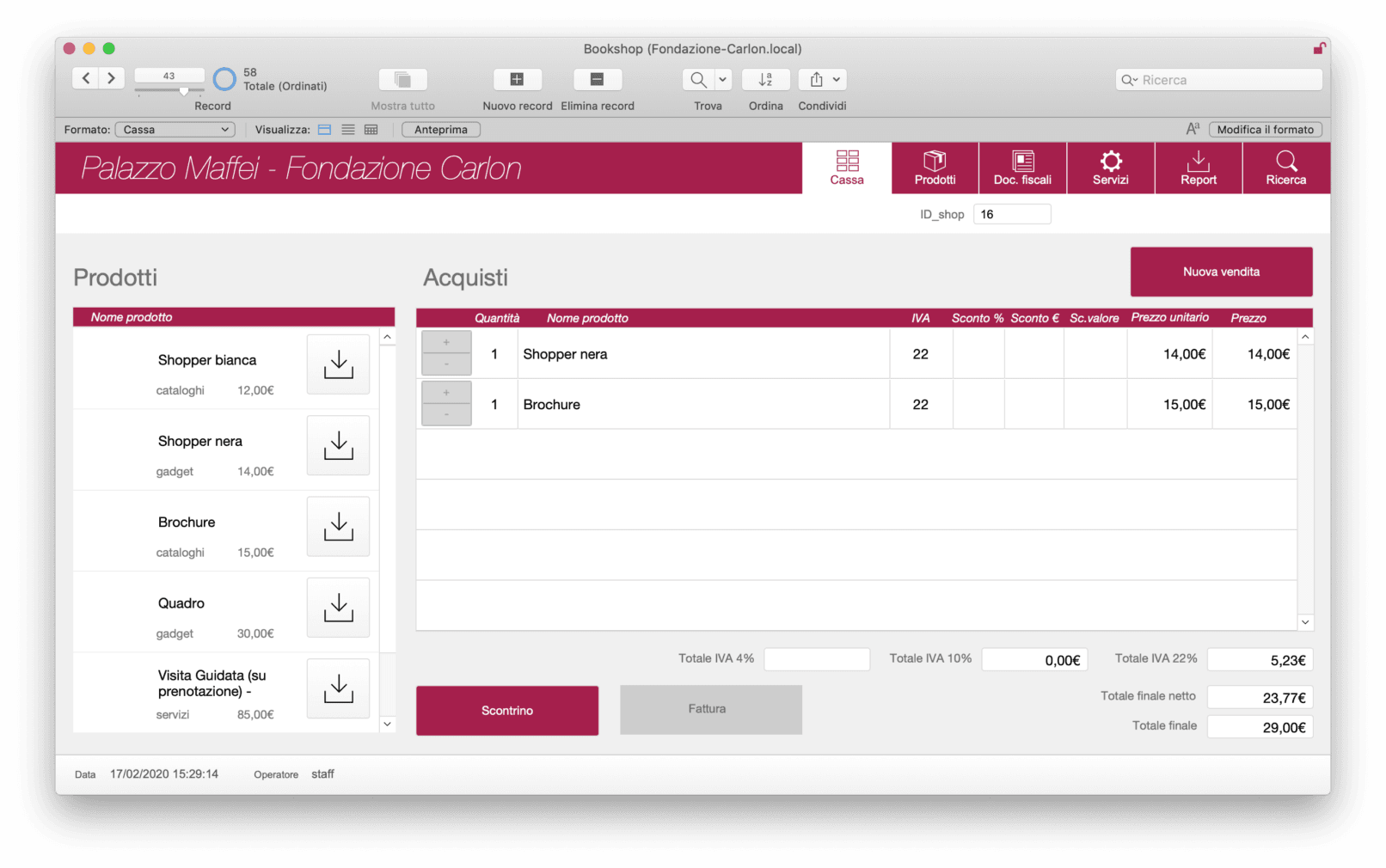 FunnelArt ha realizzato il software per la gestione del Bookshop della Casa Museo – Palazzo Maffei. Attraverso l’utilizzo di tablet collegato wireless con il server centrale, la cassa può “spostarsi” in più luoghi e piò “moltiplicarsi” in caso di necessità.